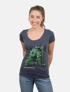 - Cotton/poly wide neck tee