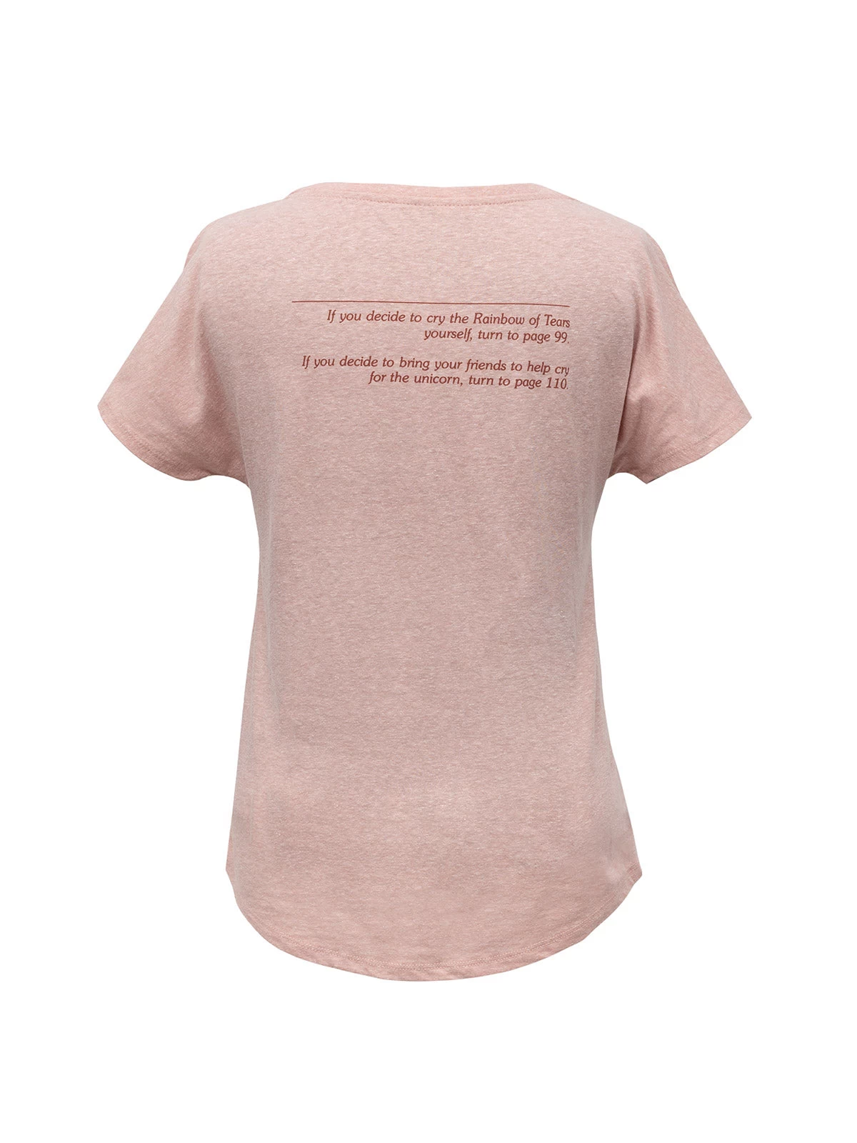 “If you decide to cry the Rainbow of Tears yourself, turn to page 99. If you decide to bring your friends to help cry for the unicorn, turn to page 110.”
