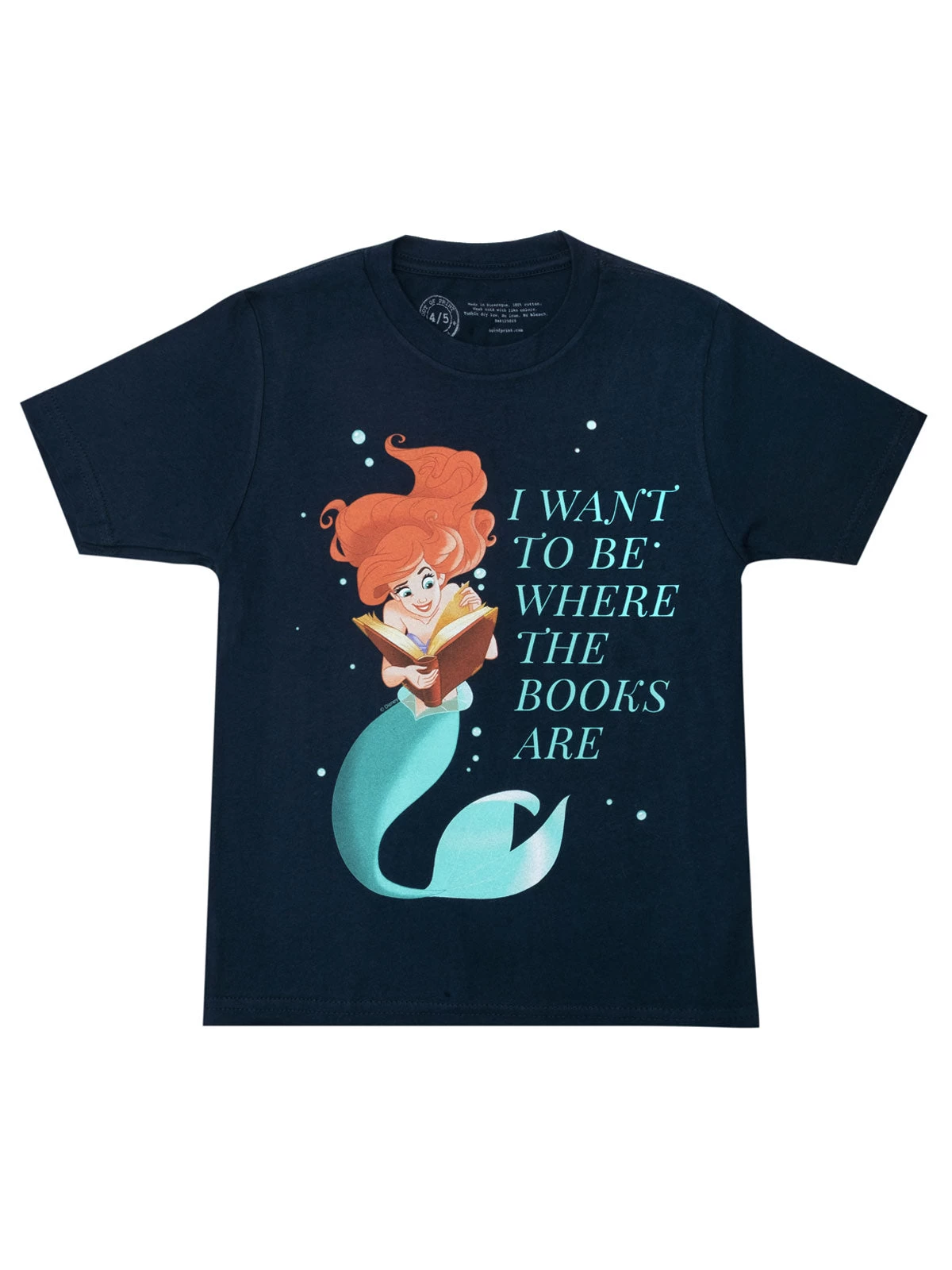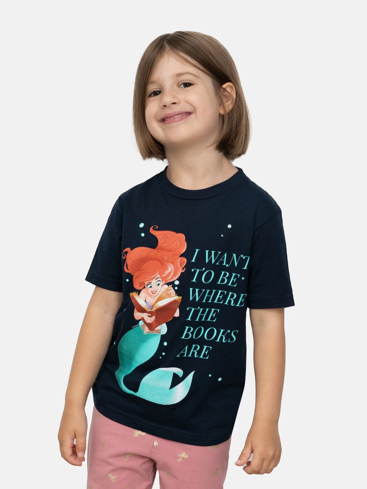 Celebrate the power of books with our Disney – Princess Ariel “I Want to Be Where the Books Are” kids’ tee.