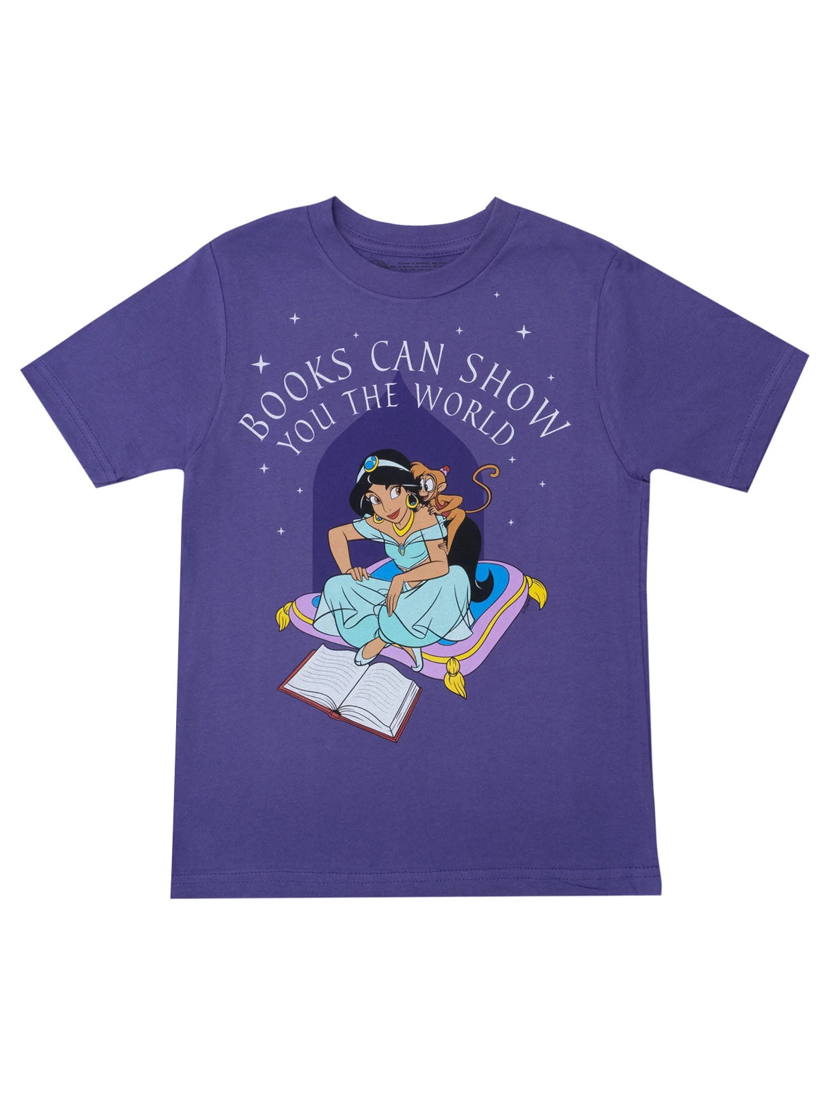 Explore the world of books with our Disney – Princess Jasmine “Books Can Show You the World” kids’ tee.