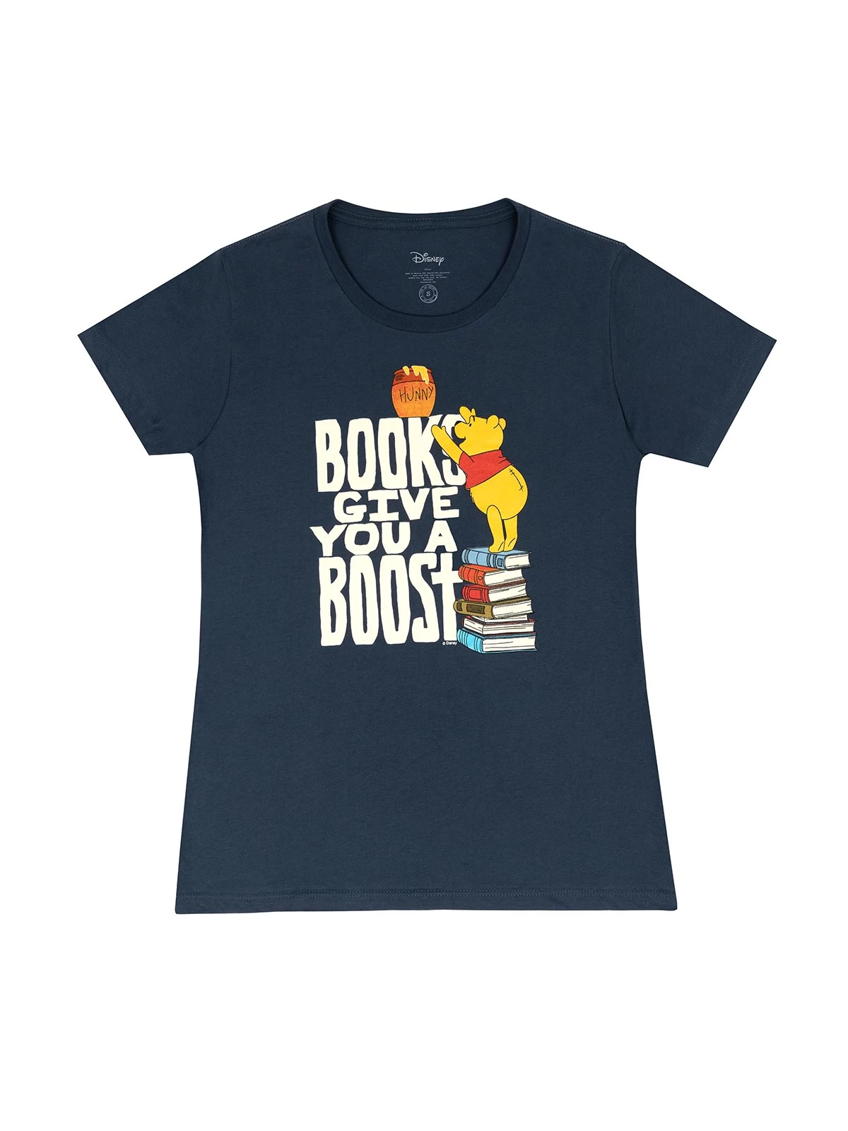 Books give you a boost! Our adult women’s t-shirt features Disney’s Winnie the Pooh.