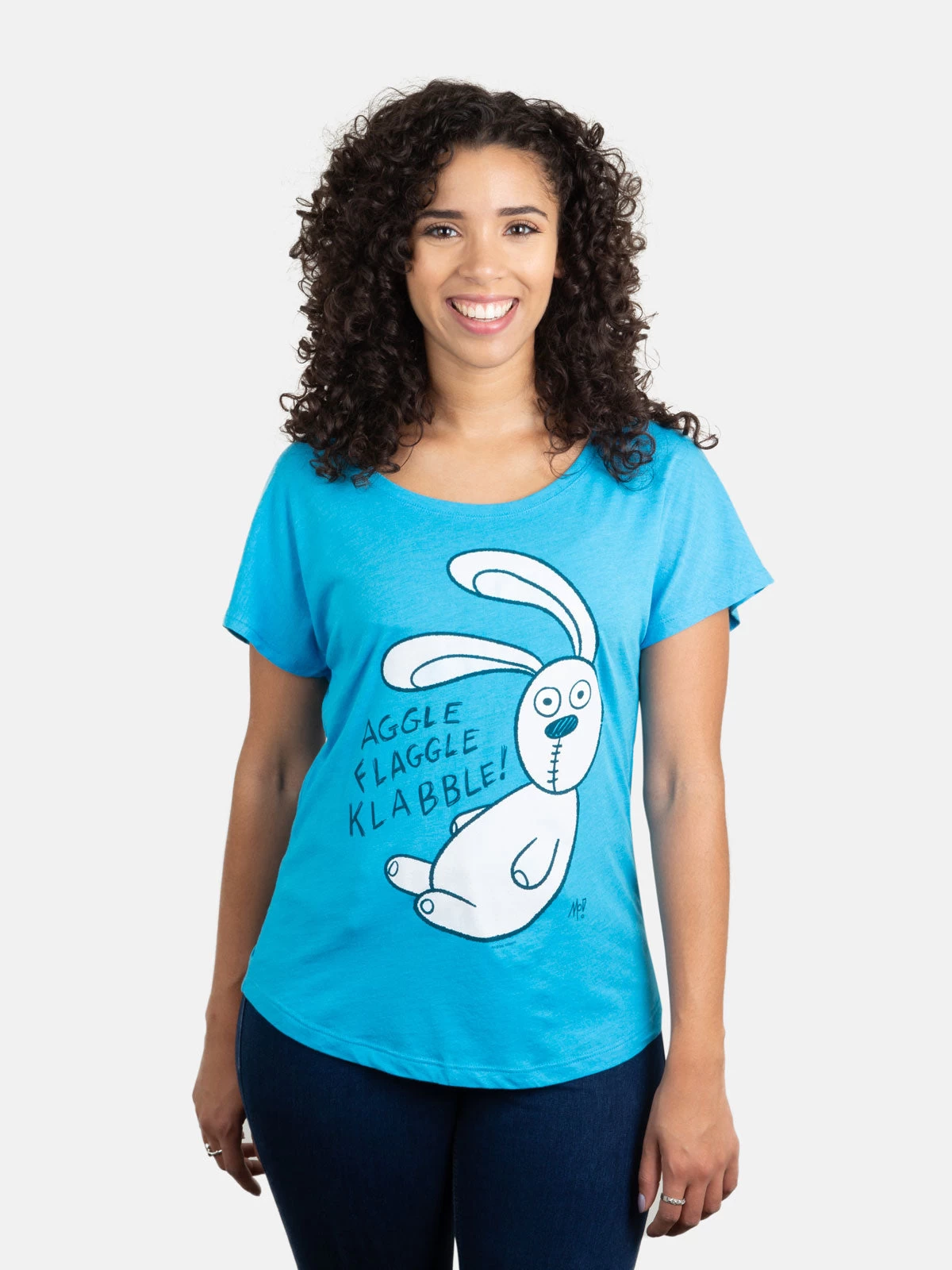 - Cotton/poly wide neck tee