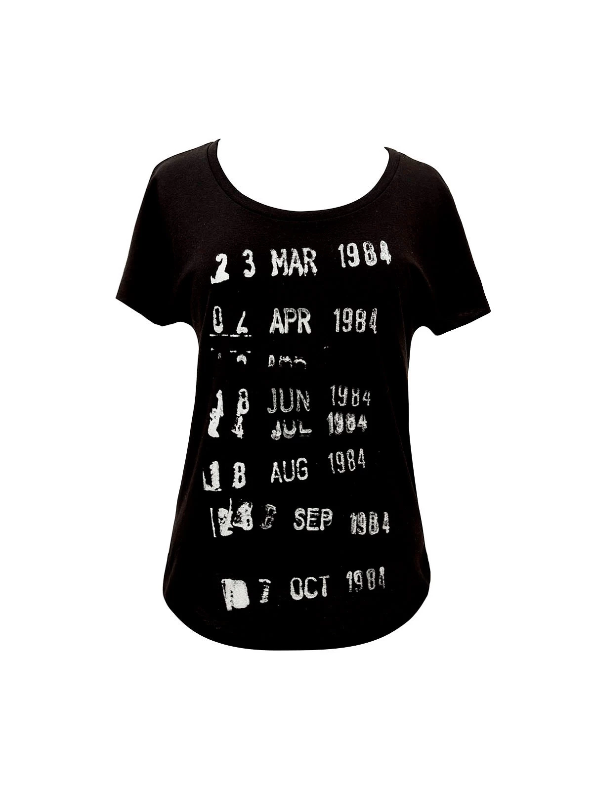 - Distressed, softened print
